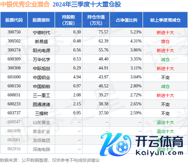 中银优秀企业羼杂为羼杂型-偏股基金,凭证最新一期基金季报线路,该基金钞票成就:股票占净值比90.11%,债券占净值比4.9%,现款占净值比3.95%。基金十大重仓股如下: