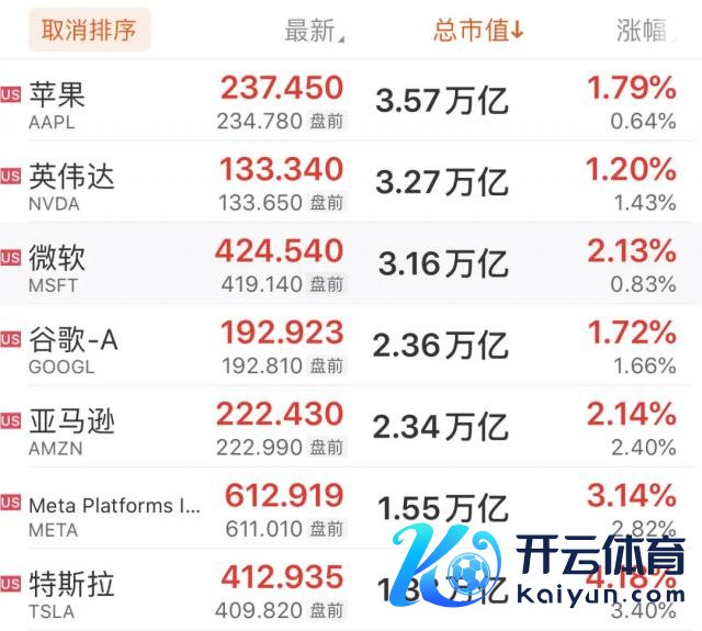 大型科技股普涨,特斯拉涨超 4%,Meta 涨超 3%,微软、亚马逊涨超 2%,苹果、谷歌 A 涨近 2%,英伟达涨超 1%。