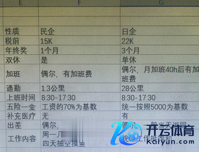 小罗在一家民营企业公司职责了5年,由于时代相对相比长了,于是就思着出去望望商场上有莫得好的契机,终末拿到了一个日企的offer,小罗将我方咫尺的职责和这个offer作念了一个对比