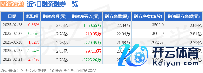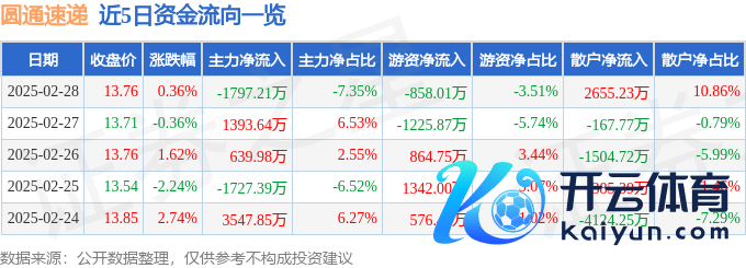 本站音书,贬抑2025年2月28日收盘,圆通速递(600233)报收于13.76元,高涨0.36%,换手率0.51%,成交量17.72万手,成交额2.44亿元。